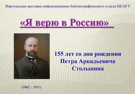Виртуальные выставки: коллекция. — "Я верю в Россию". 155-лет со дня рождения Петра Аркадьевича Столыпина New arrival!